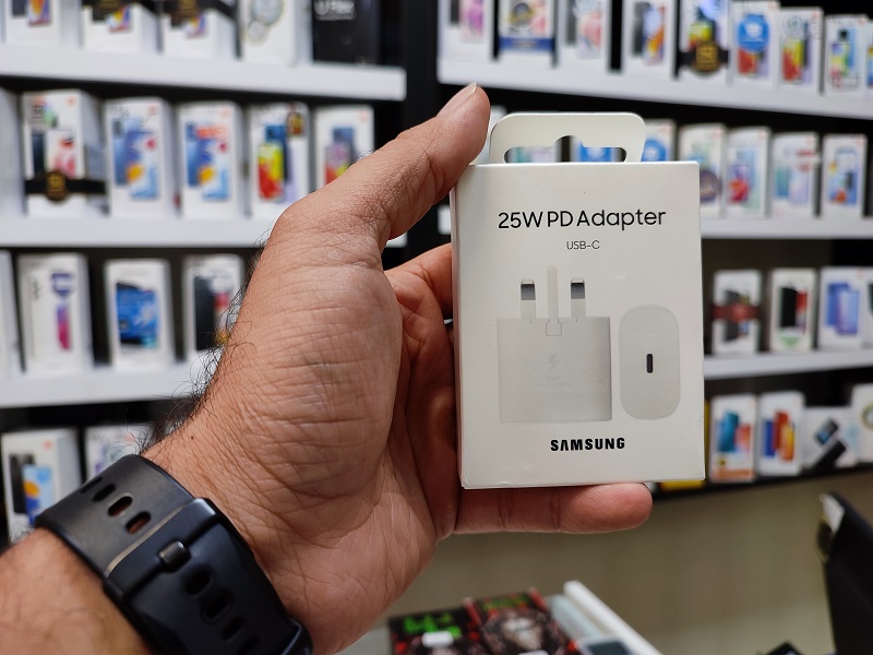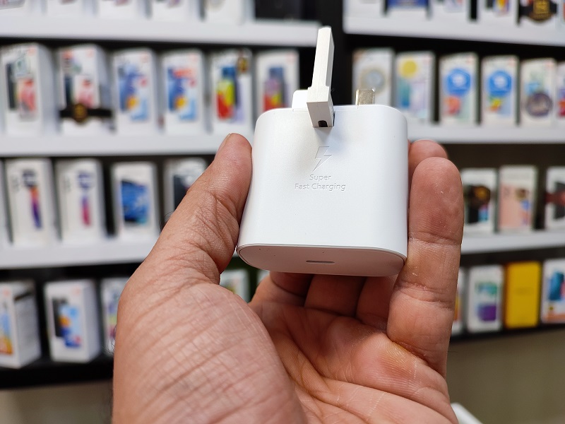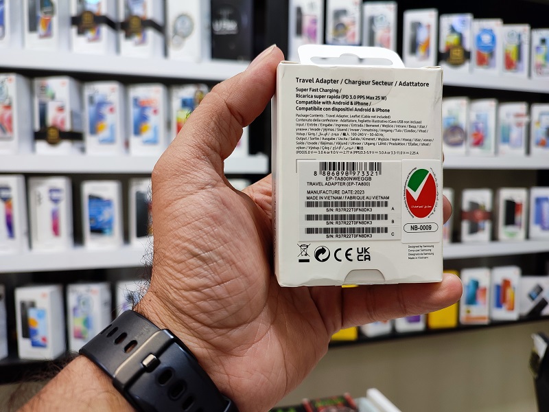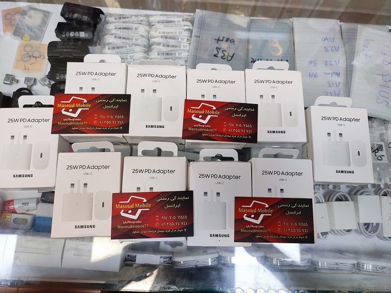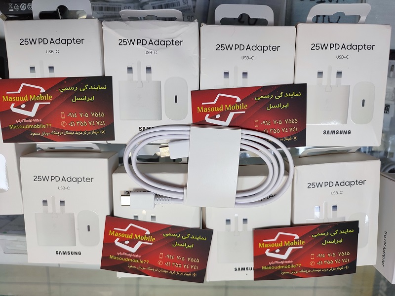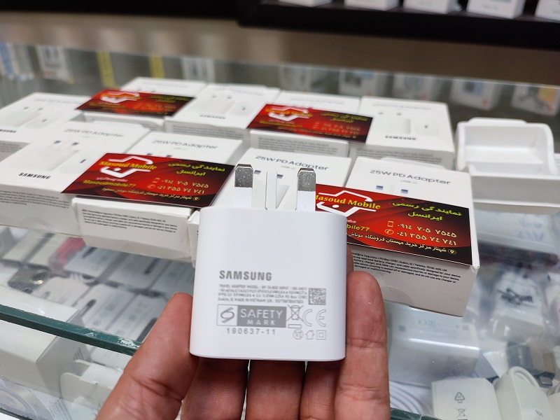 • کله شارژر 25 وات فابریک سامسونگ: کیفیت بهترین . دارای تگ NFC هست . اگه گوشی رو روی کله شارژر بزارید بدون اینکه روی چیزی کلیک کنید مستقیما سایت خود سامسونگ رو باز میکنه و مشخصات کله شارژر رو نشون میده