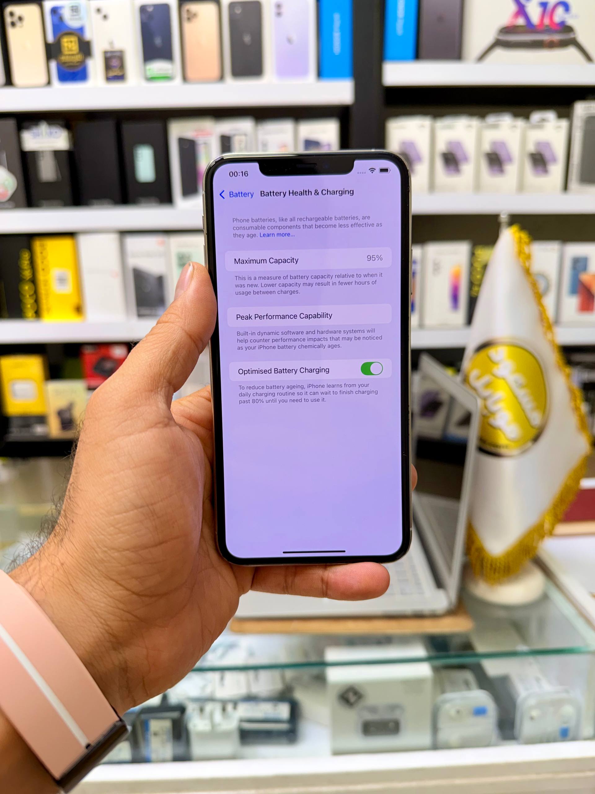 آیفون 11 پرومکس سری M پارت نامبر CHA دو سیمکارت حافظه 256 گیگ باتری فابریک خودش با سلامت باتری 95 درصد